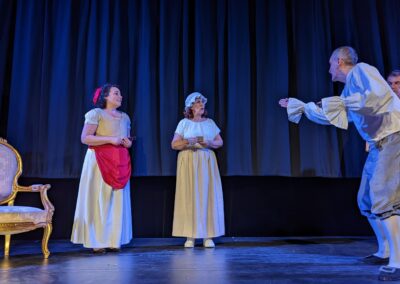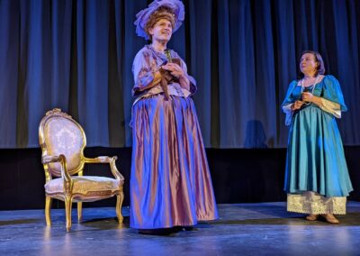 De son côté, la Comtesse éblouie par l’étiquette des “personnes de qualité” de la Cour, s’est jurée de faire pratiquer chez elle le train de vie de Paris. Mais ses domestiques ne sont que des paysans incultes, sa maison est loin d’être un palais, son blason cache son peu de fortune, et ses prétendants ne sont ni marquis, ni princes, mais notables de province gonflés de leur propre importance. Parmi ses soupirants, il y a bien le Vicomte mais, en vérité, ce dernier ne fréquente le salon de la Comtesse que pour y courtiser la jeune et jolie Julie, qu’une vieille querelle entre leurs deux familles l’empêche de fréquenter ailleurs…