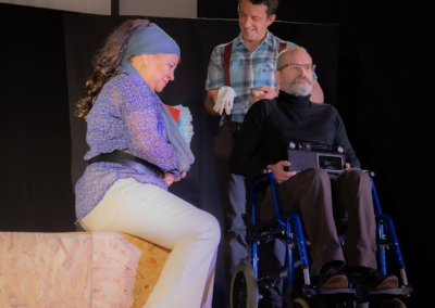 Présentée pour la première fois au Festival International de théâtre amateur de Marignac, dans la Haute-Garonne, en mai 2024, cette pièce est sans doute l’univers le plus absurde que la Compagnie ait réalisé jusque là.